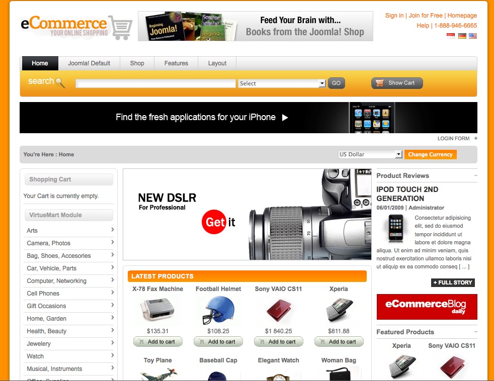 eCommmerce Plazza é um template para loja online em Joomla+VirtueMart. com um conjunto de inovadoras funcionalidade, tais como: