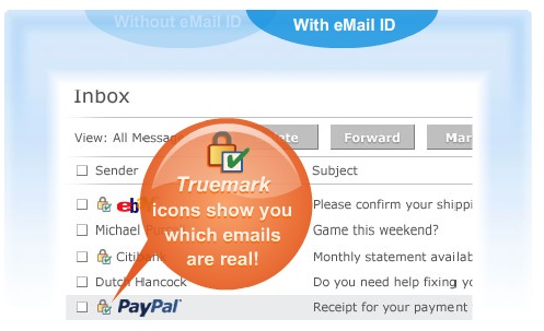 eMail ID é simples de configurar e usar. Após fazer o download e instalar o plug-in, o utilizador pode encontrar o ícone Truemark, que informa que o remetente foi verificado e considerado legítimo.