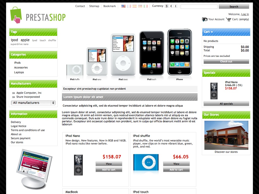 Na versão Lite sómente são alterados alguns dos elementos por defeito do Prestashop.
