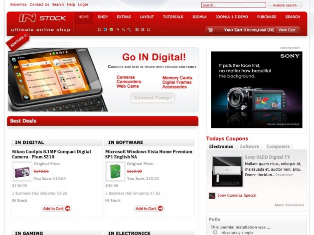 IN STOCK Ultimate Joomla Shopping Template é um template de grande qualidade da youjoomla para o VirtueMart.
