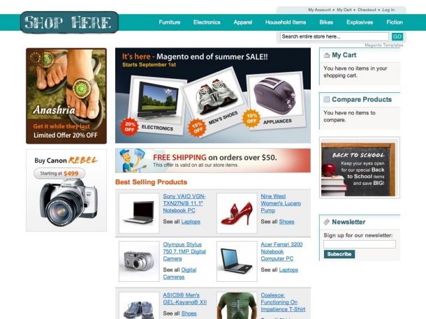 Tema simples e limpo, facilmente personalizável, gratuito, para Magento.