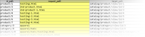 Em baixo uma imagem da base de dados mostrando o resultado da utilização de URLs amigáveis.