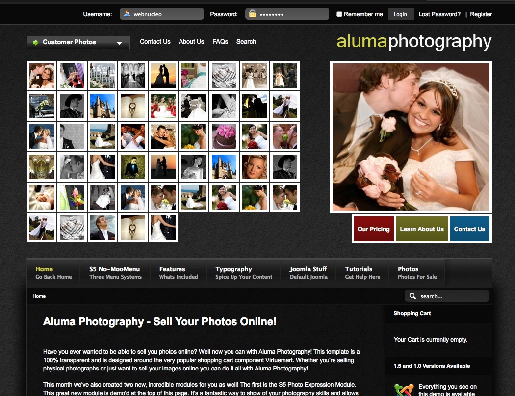 Aluma Photography é um template Joomla+VirtueMart desenvolvido para uma solução de loja online para venda de fotos.