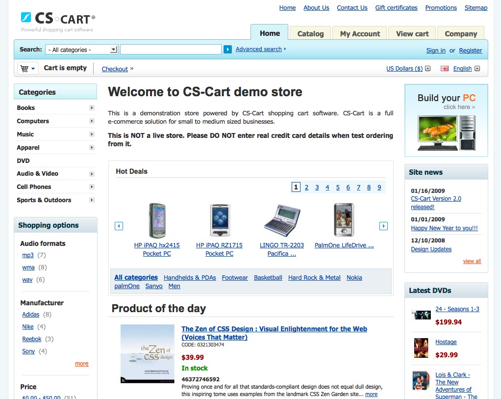 Trata-se de uma aplicação com um elevado número de funcionalidades e uma poderosa área de administração que permite a construção de uma loja online verdadeiramente profissional.