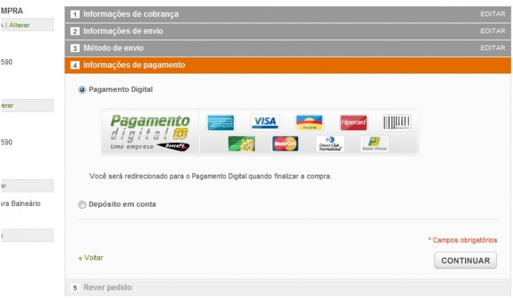 Módulo de pagamento utilizando o serviço Pagamento Digital, desenvolvido pela Indexa Internet.