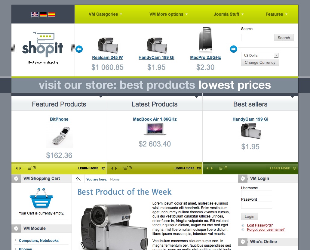 Shop It é um template da BonusThemes.com para Joomla+VirtueMart desenhado para e-commerce websites.