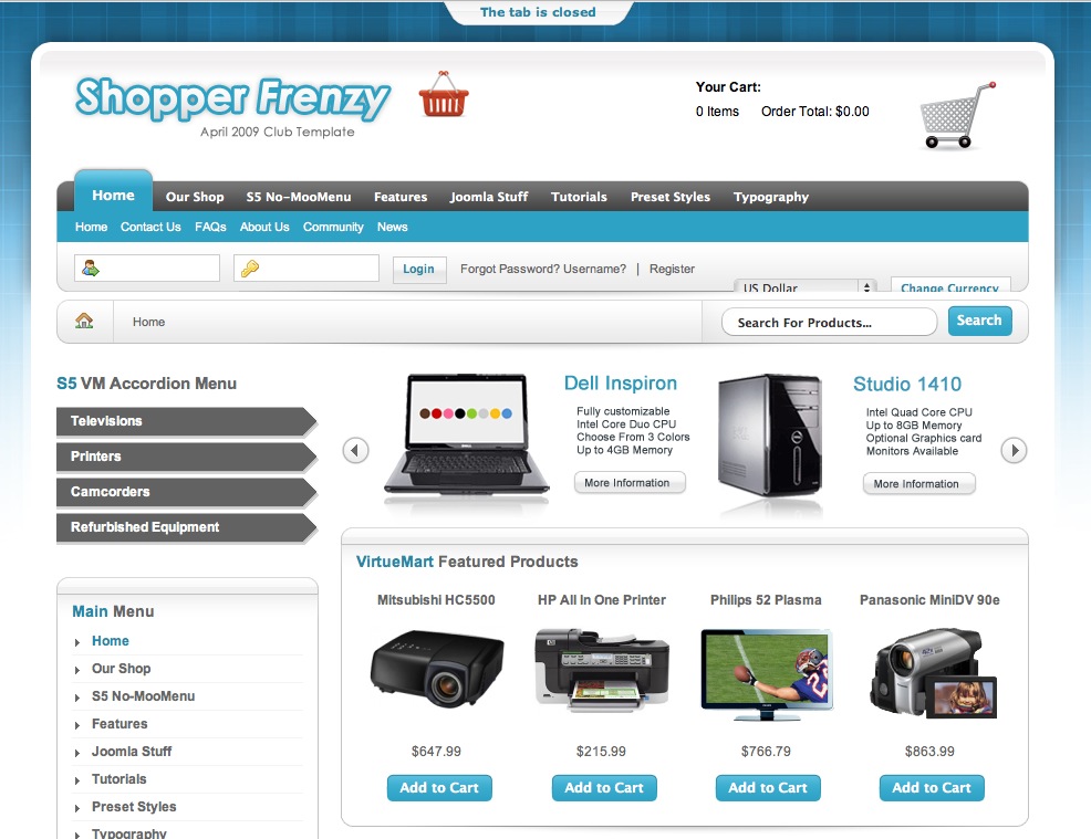 S5 VM Accordion, VM Currency, VM Featured Products, Virtuemart Random Products, S5 Drop Down Cart and VM Product Search.