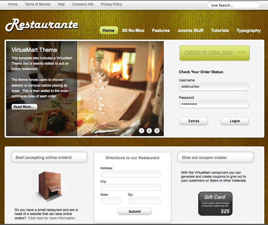 RESTAURANTE é um template joomla+virtuemart concebido especialmente para um negócio de restauração.