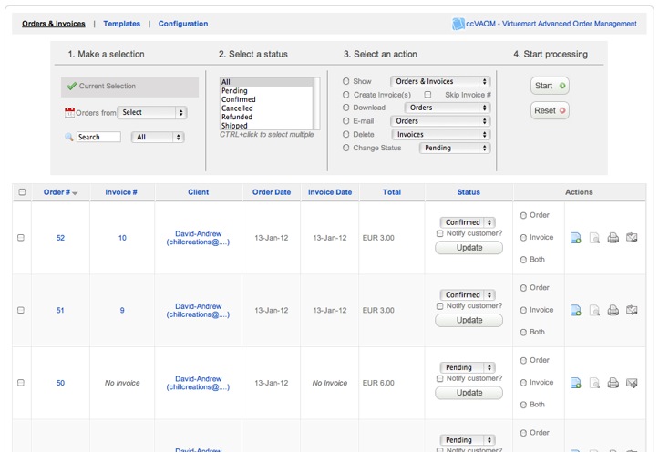 ccVAOM é uma extensão Joomla (comercial) que permite a gestão de compras numa loja VirtueMart.