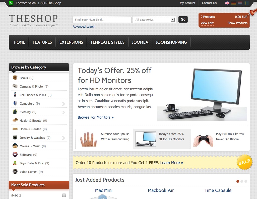 IT TheShop, é um template Joomla desenvolvido especialmente para a utilização com o componente JoomShopping.