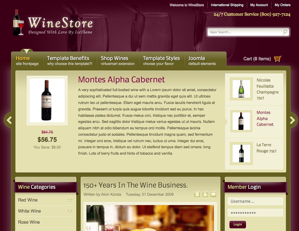 IT WineStore é um tema ecommerce Joomla desenvolvido específicamente para uma loja de bebidas ou vinhos.